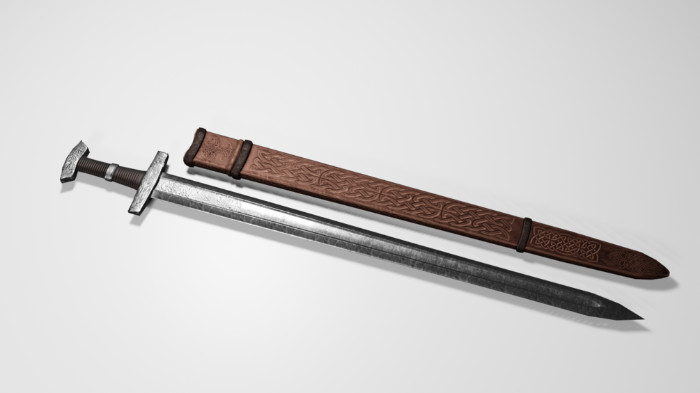 A Norse inspired sword with a leather scabbard!